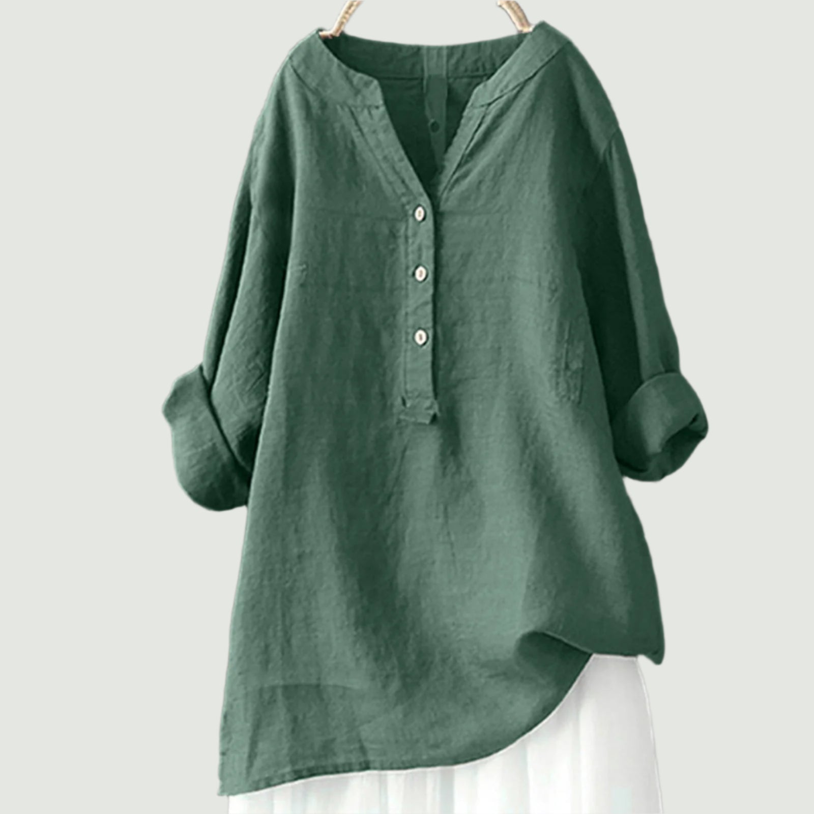 Emma toppen er lavet af åndbart hør, som føles blødt og holder dig kølig på varme dage. Den løstsiddende pasform gør den nem at bevæge sig i, uden at den strammer. Uanset om du skal på stranden, gå en tur eller nyde en middag, passer denne top til både krop og anledning.