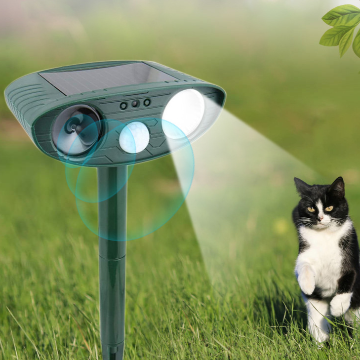 En spot solcelledrevet dyreafviser er en human og effektiv måde at skræmme uønskede dyr væk fra din ejendom. Disse enheder bruger ultralydsteknologi til at udsende højfrekvente lyde, der er ubehagelige for dyr, men uhørlige for mennesker. Solpanelerne sikrer kontinuerlig drift uden behov for batterier.