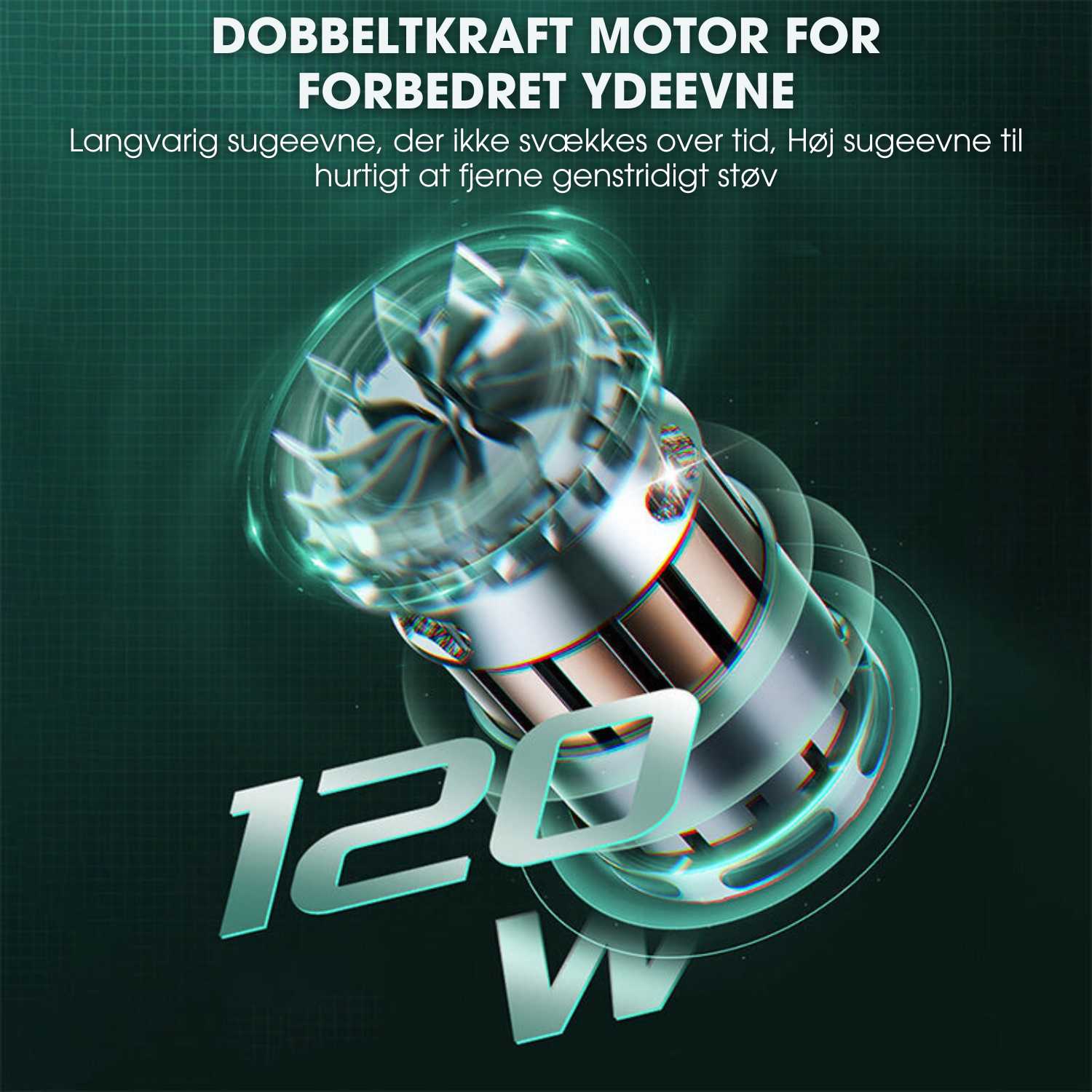 Det højkapacitetsbatteri giver op til 45 minutters kontinuerlig brug, hvilket muliggør omfattende rengøringssessioner uden afbrydelser.